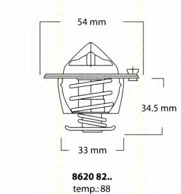 Термостат, охлаждающая жидкость Диаметр [мм] : 54 Дополнительный артикул / Дополнительная информация : с прокладкой Температура открытия [°C] : 88