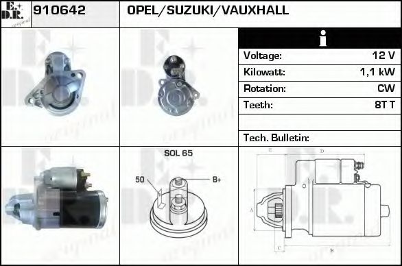 Стартер Мощность стартера [кВт] : 1,1 Напряжение [В] : 12 Число зубцов : 8