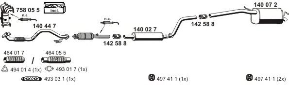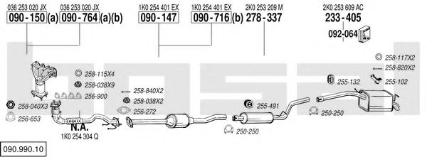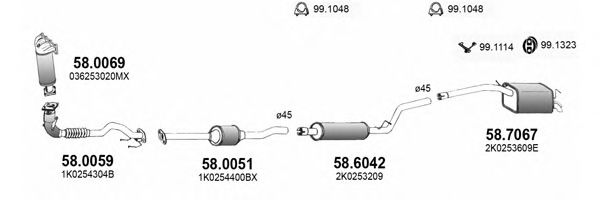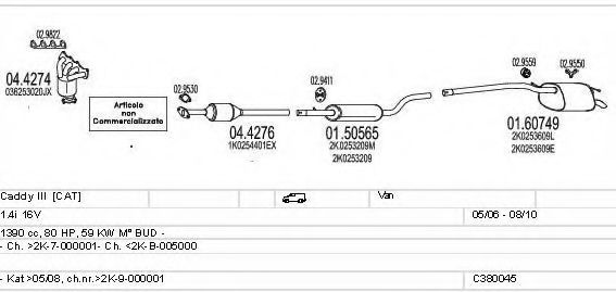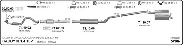 Список запчастей для VW CADDY III универсал (2KB, 2KJ, 2CB, 2CJ) 1.4 Мотоцикл Глушитель в сборе
